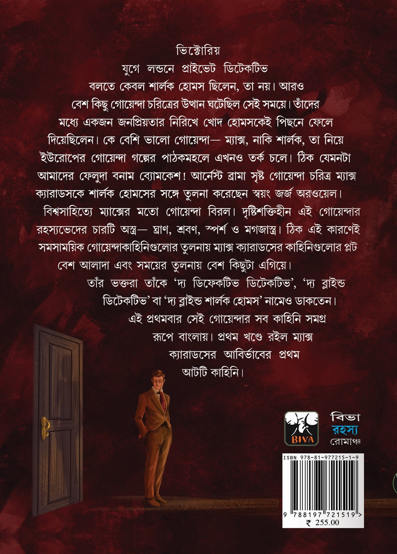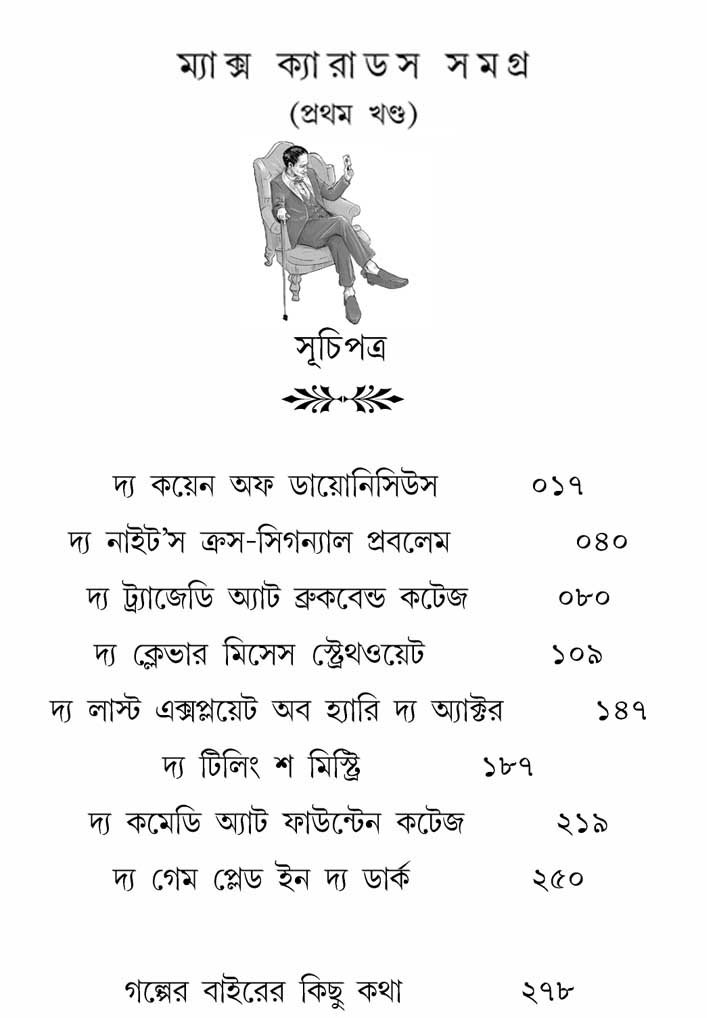 ভিক্টোরিয় যুগে লন্ডনে প্রাইভেট ডিটেকটিভ বলতে কেবল শার্লক হোমস ছিলেন, তা নয়। আরও বেশ কিছু গোয়েন্দা চরিত্রের উত্থান ঘটেছিল সেই সময়ে। তাঁদের মধ্যে একজন জনপ্রিয়তার নিরিখে খোদ হোমসকেই পিছনে ফেলে দিয়েছিলেন। কে বেশি ভালো গোয়েন্দা- ম্যাক্স, নাকি শার্লক, তা নিয়ে ইউরোপের গোয়েন্দা গল্পের পাঠকমহলে এখনও তর্ক চলে। ঠিক যেমনটা আমাদের ফেলুদা বনাম ব্যোমকেশ। আর্নেস্ট ব্রামা সৃষ্ট গোয়েন্দা চরিত্র ম্যাক্স ক্যারাডসকে শার্লক হোমসের সঙ্গে তুলনা করেছেন স্বয়ং জর্জ অরওয়েল। বিশ্বসাহিত্যে ম্যাক্সের মতো গোয়েন্দা বিরল। দৃষ্টিশক্তিহীন এই গোয়েন্দার রহস্যভেদের চারটি অস্ত্র ঘ্রাণ, শ্রবণ, স্পর্শ ও মগজাস্ত্র। ঠিক এই কারণেই সমসাময়িক গোয়েন্দাকাহিনিগুলোর তুলনায় ম্যাক্স ক্যারাডসের কাহিনিগুলোর প্লট বেশ আলাদা এবং সময়ের তুলনায় বেশ কিছুটা এগিয়ে। তাঁর ভক্তরা তাঁকে ‘দ্য ডিফেকটিভ ডিটেকটিভ’, ‘দ্য ব্লাইন্ড ডিটেকটিভ’ বা ‘দ্য ব্লাইন্ড শার্লক হোমস’ নামেও ডাকতেন। এই প্রথমবার সেই গোয়েন্দার সব কাহিনি সমগ্র রূপে বাংলায়। প্রথম খণ্ডে রইল ম্যাক্স ক্যারাডসের আবির্ভাবের প্রথম আটটি কাহিনি।